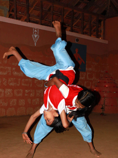 Kalaripayattu is taught free to kids from the neighboring areas comprising of both girls and boys. It not only helps students to be alert, fit and healthy but also empowers them, especially the girls to not only defend themselves against bullying and eve teasing but also to face any obstacles head on thus boosting their self confidence.